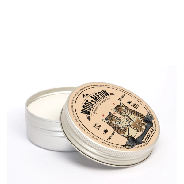 Bálsamo bloqueador solar específicamente formulado para brindar protección solar integral a perros, gatos e incluso caballos.